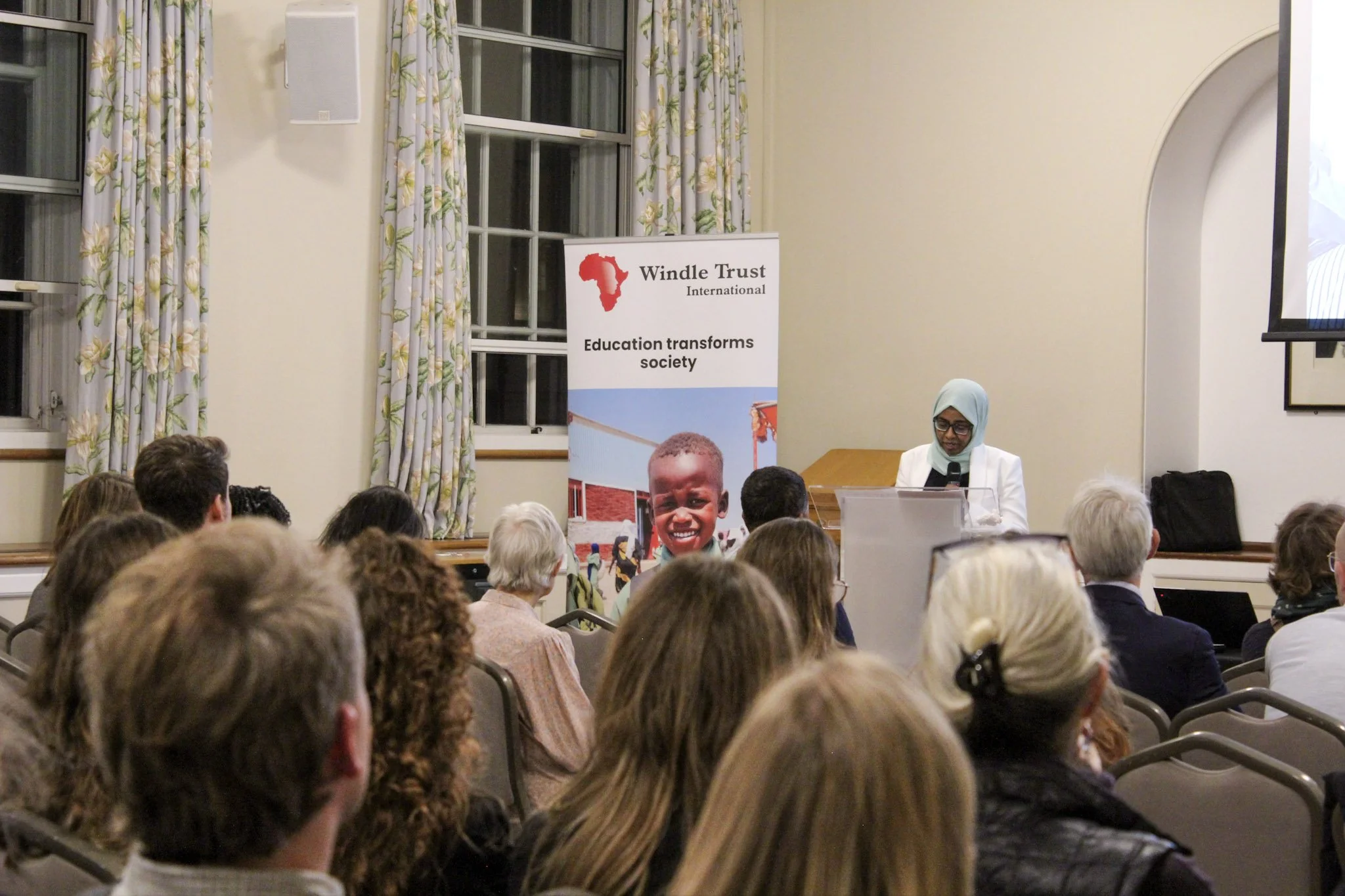 Dr Alaa speaking at the WTI ‘Educating for Change’ event at the Goodenough College, London, in November 2025.